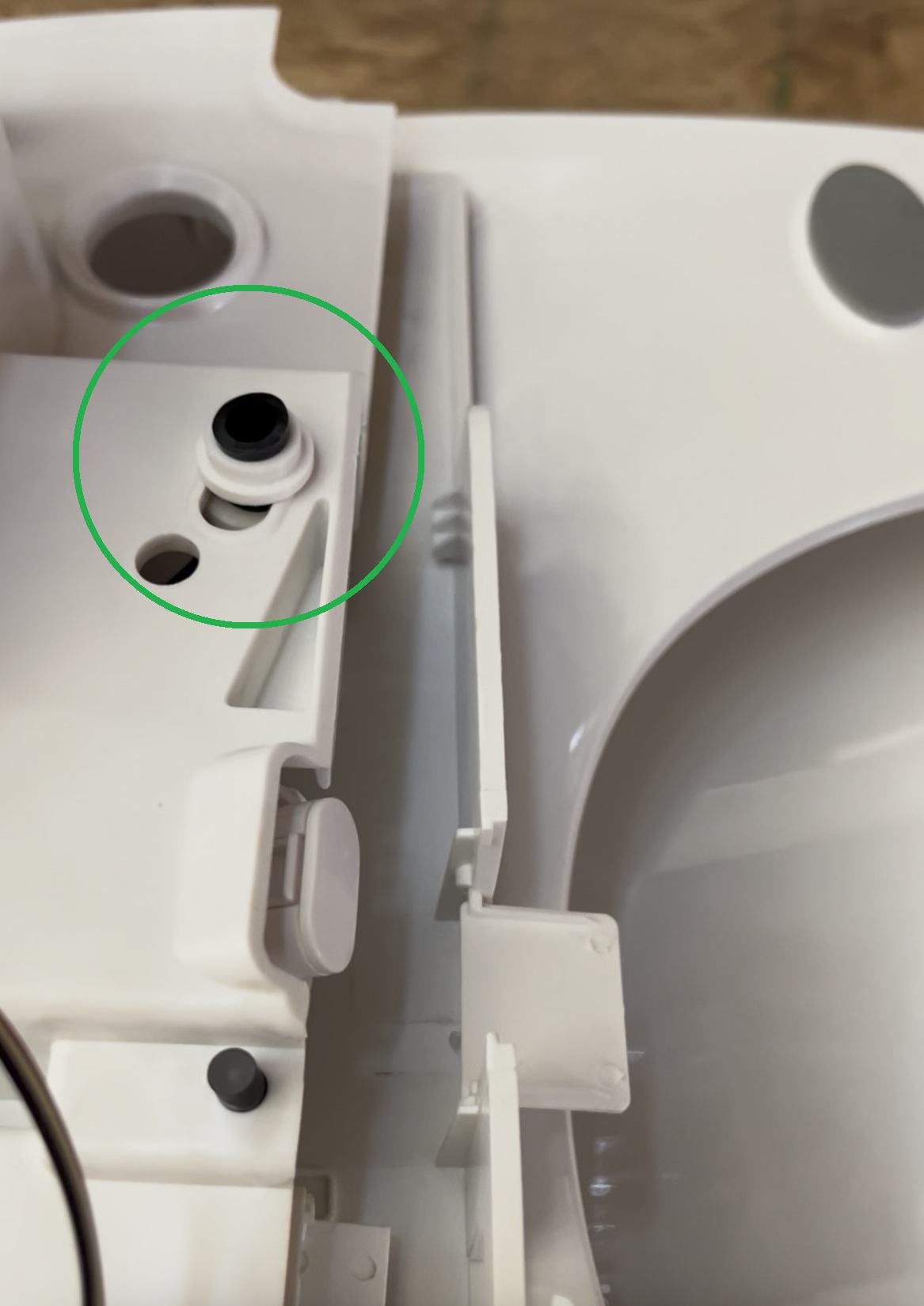 - Re-assemble bidet seat. Use inline filter to make connection from bidet seat to Sniffer system intake tubing